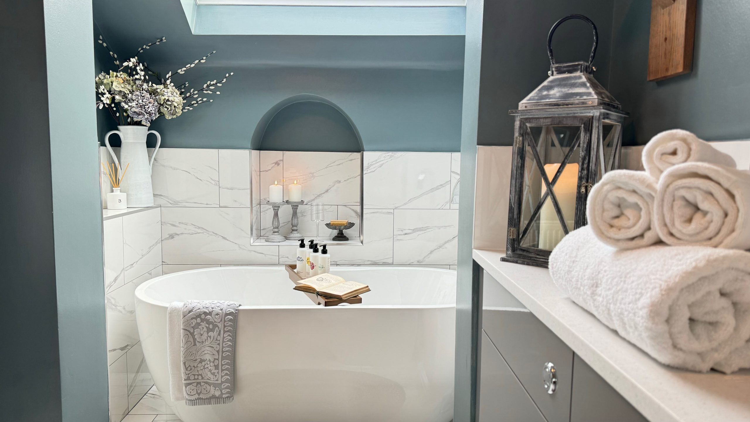 Hare cottage is currently the largest of our cottages. With a private walled garden and an outhouse with a dog grooming bath inside. A spacious kitchen equipped with a large fridge freezer leads through to an open-plan living and dining area with a log-burning stove and a spacious area for family and friends to gather.