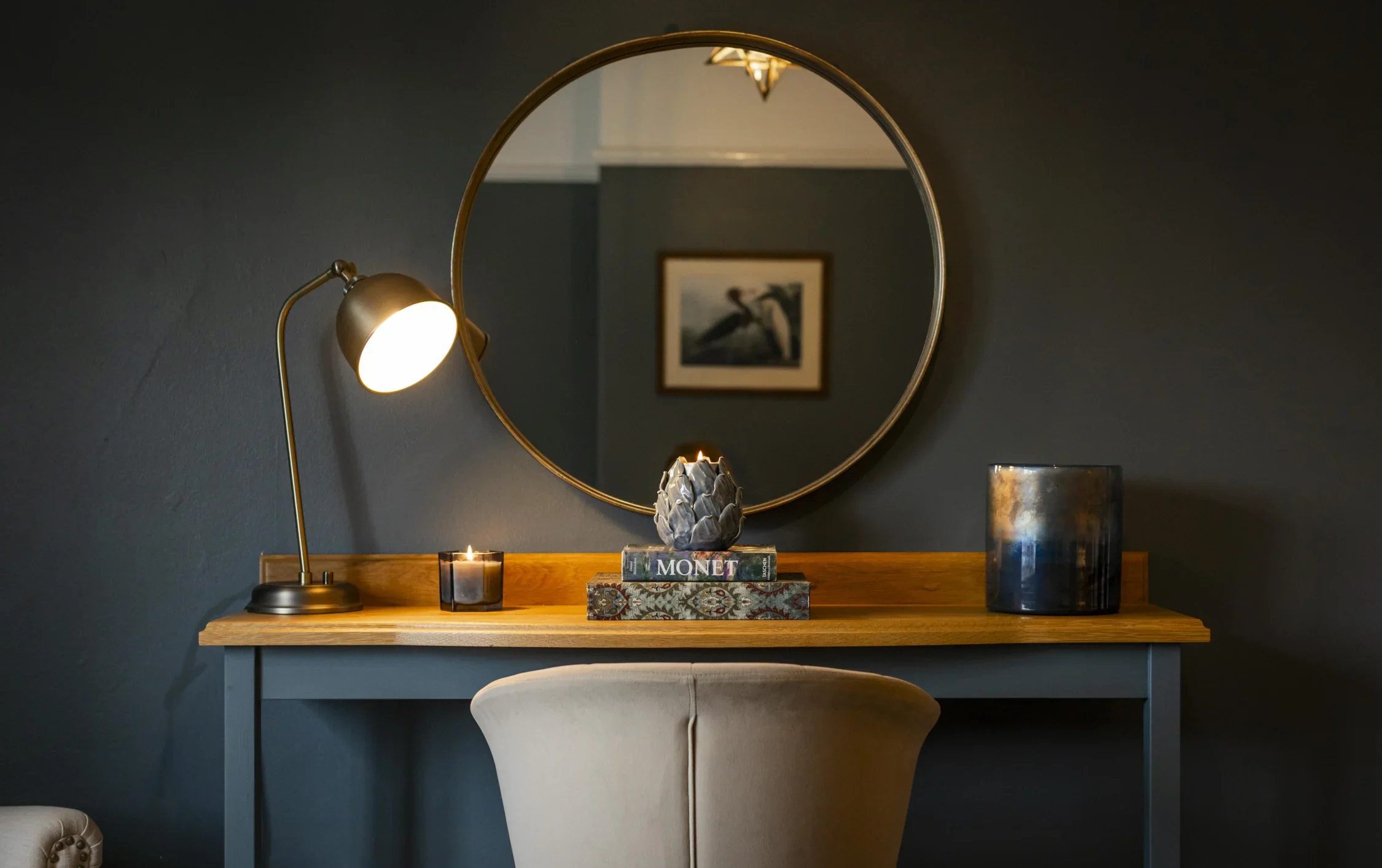 An enchanting blend of past elegance and modern charm. Inspired by the graceful Herons frequenting the seven-acre lake, the interiors exhibit soothing greys and blues. Every corner of this cottage carries a sense of timeless allure, seamlessly combining period features with contemporary comforts.