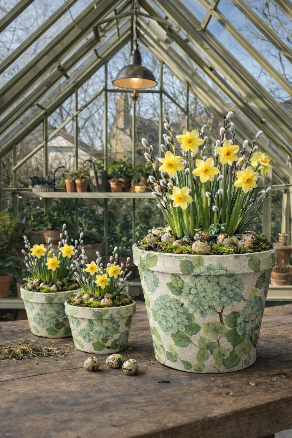 - Saturday – 2 pm Compose a seasonal bulb arrangement in your decoupaged pot.