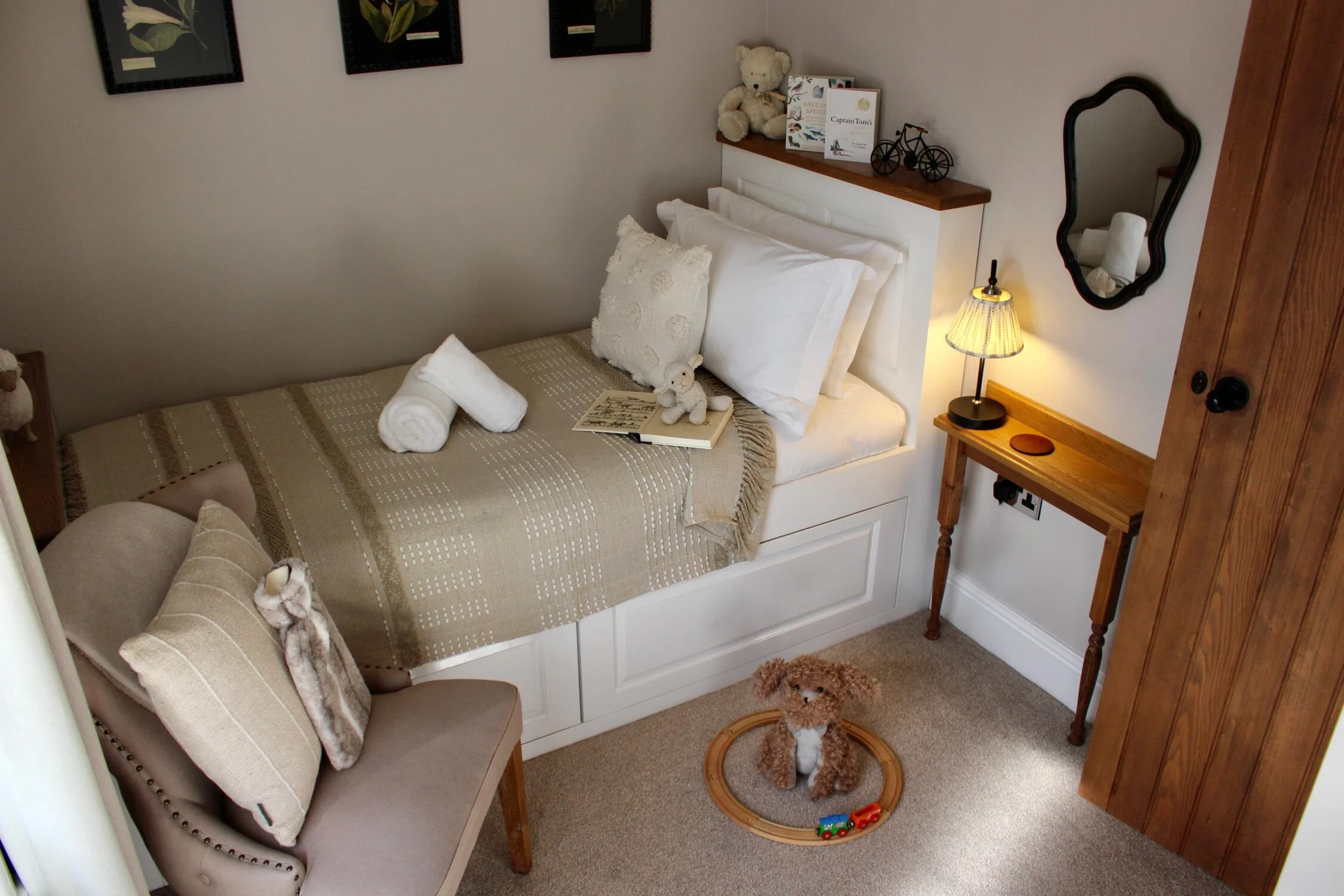 Hare House is a welcoming cottage styled in calming sage, soft teal, and classic ivory tones. With versatile sleeping arrangements, Hare House can accommodate up to four people.
