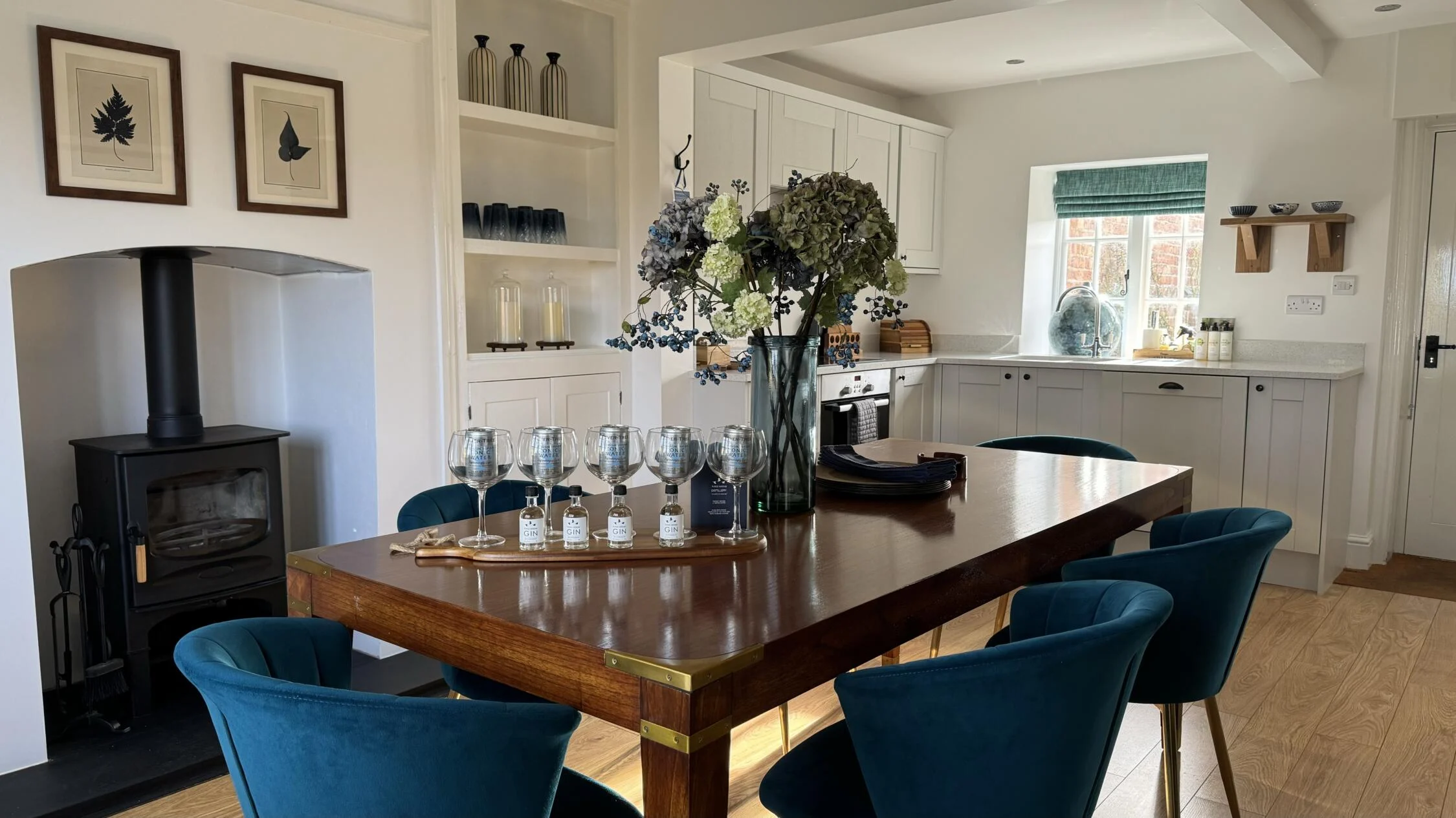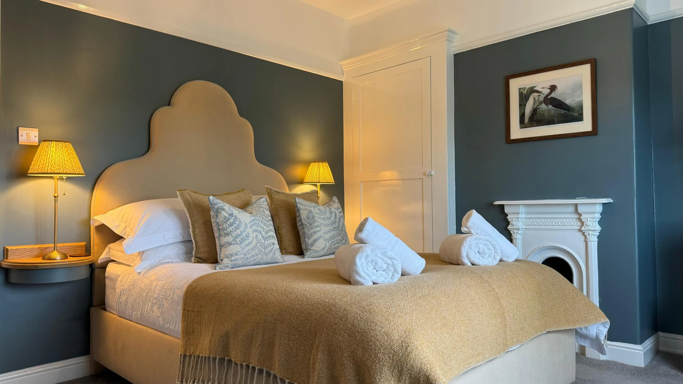 Dressed and decorated in rich shades of blue and soft mustard tones, Heron House is a vibrant three-bedroom cottage that can sleep up to four adults and one child.